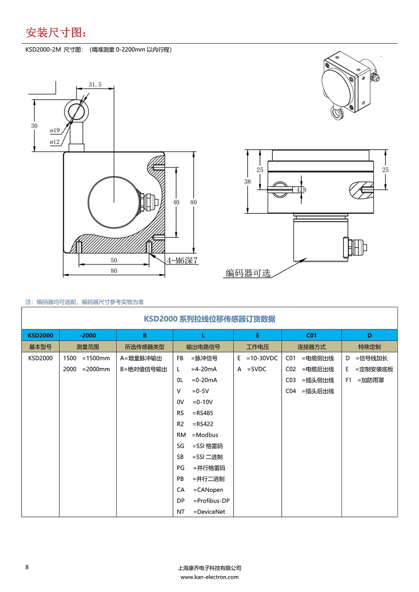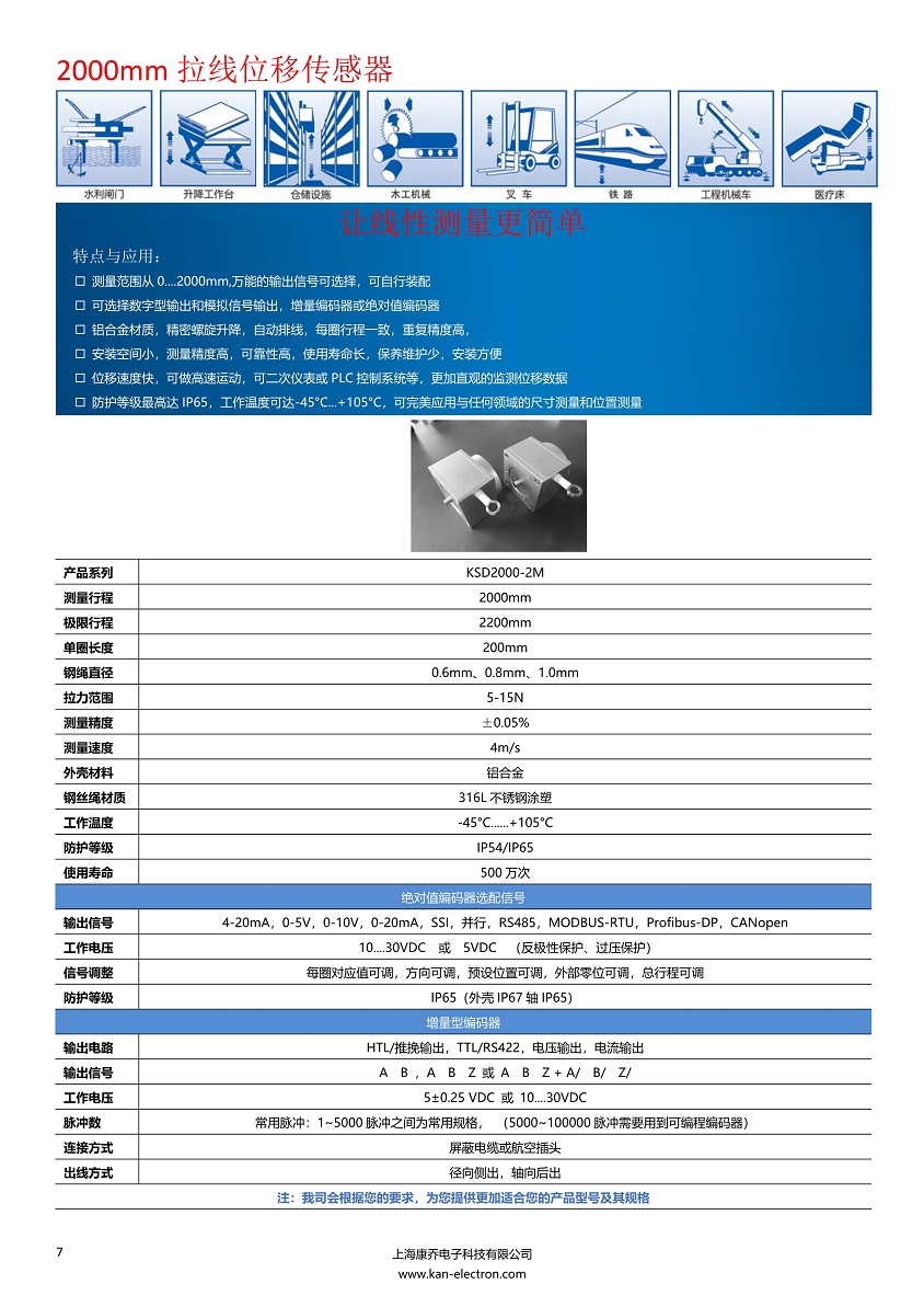 2000行程拉線位移傳感器