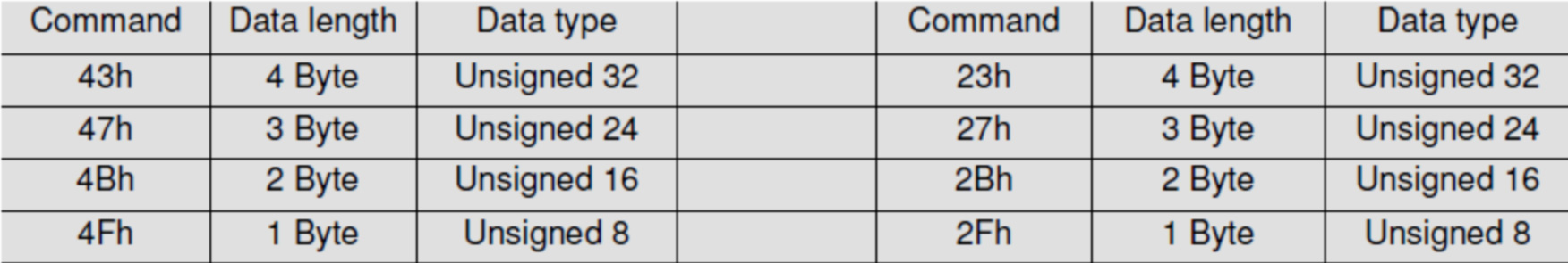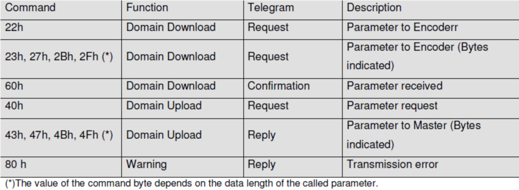 Command命令字節說明: