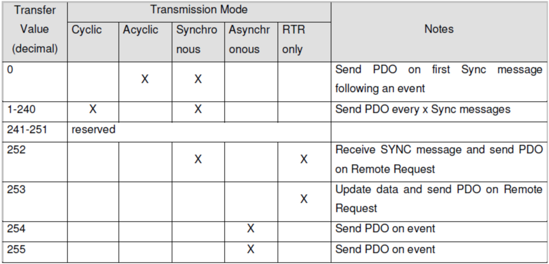 下表為可使用的Function Code,以及對應產生的標識符COB-ID: