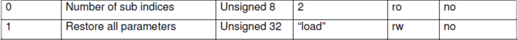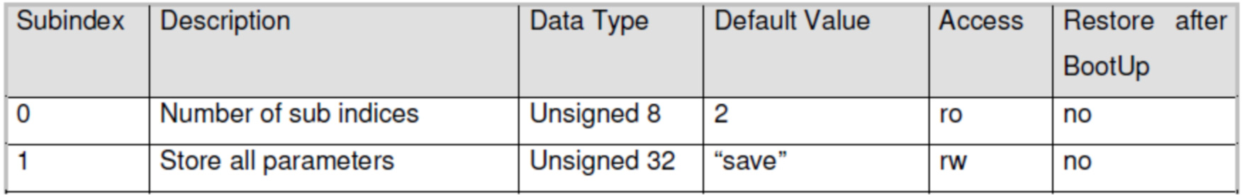 十三、保存參數Object Index=1010,Subindex=1