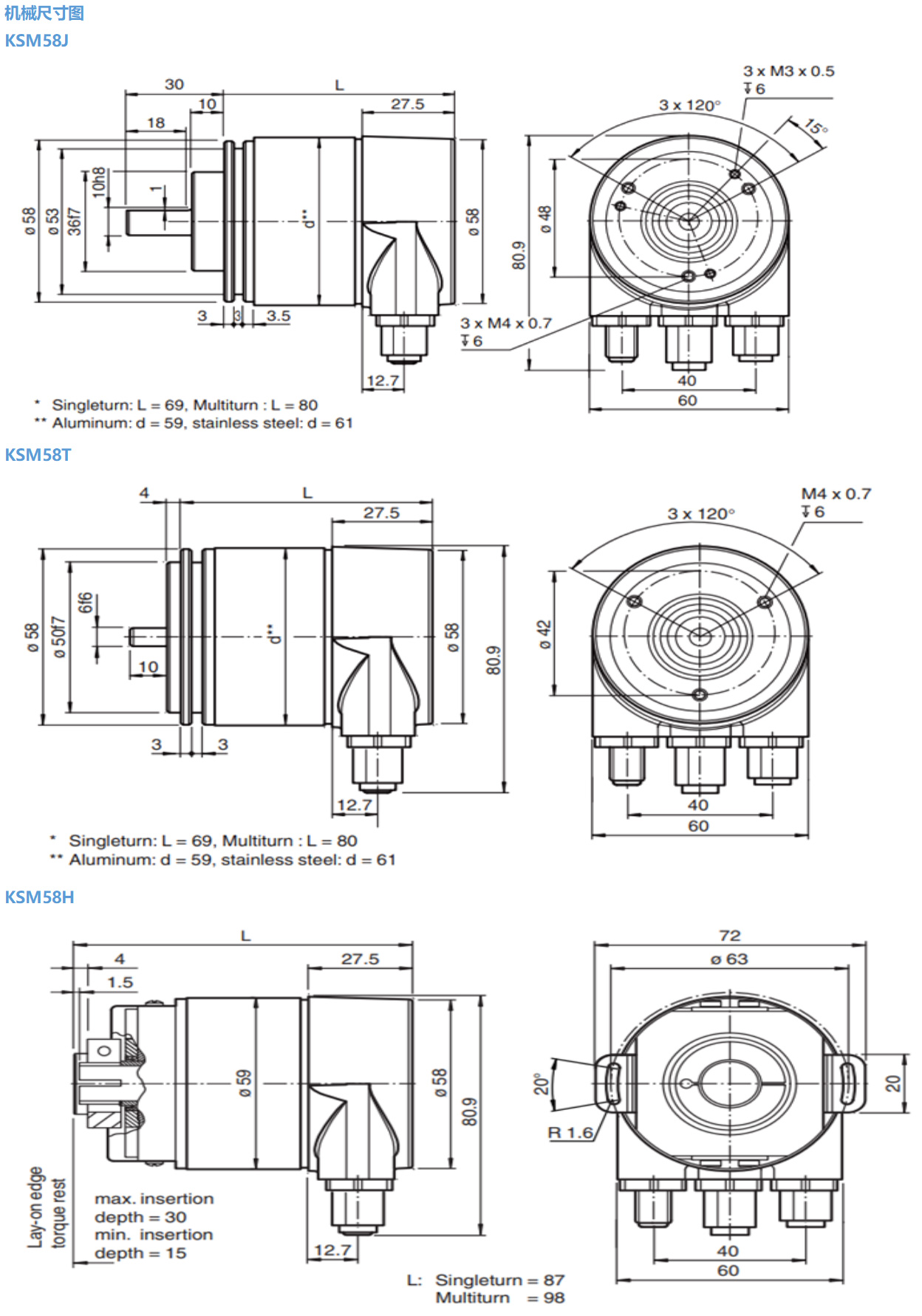 詳情請看SASM58多圈絕對值編碼器機械尺寸圖訂貨代碼